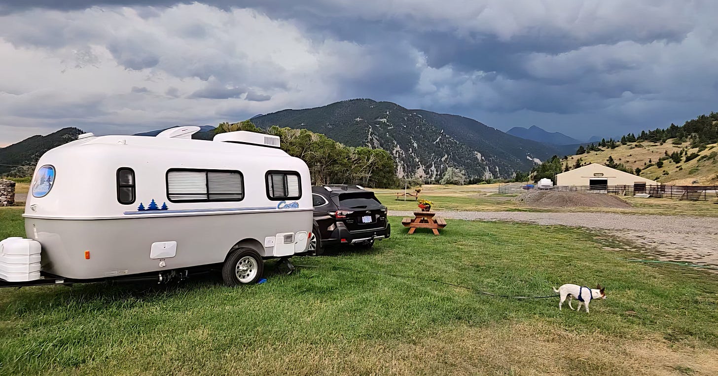 By the time we reached Livingston, Montana, both Chase and I were worn thin. He gets anxious in the car, and too many days in a row of driving catches up with him quickly. I had planned two nights at Wineglass Ranch, a place I stumbled across on Hipcamp, and it turned out to be exactly what we both needed. Not just a stopover, but a reset.